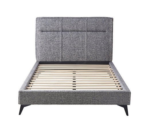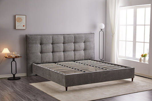 Modern Platform Bed with Grey Boucle Fabric & Black Steel Legs