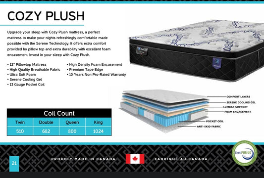 Cozy Plush 12” Pillow Top Pocket Coil Mattress Made in Canada