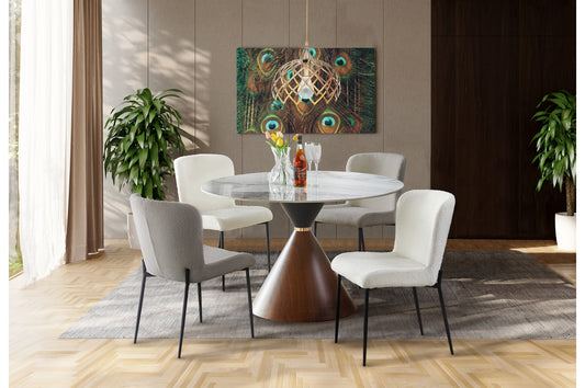 EG-Tovas /Amara 5pc Dining Set - Ivory Table with Beige Chair