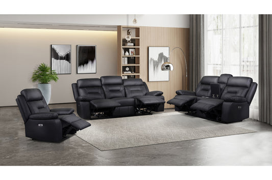 Laconia 3-Piece Black Leather Power Reclining Sofa Set