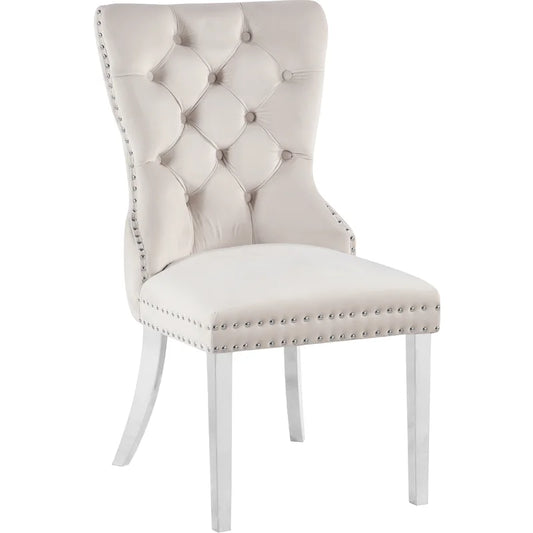 Horizontal Deep Tufted Grey PU Platform Bed with Chrome Legs