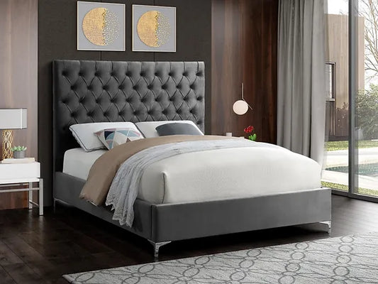 Deep Tufted Velvet Fabric Bed with Dual Chrome/Gold Legs