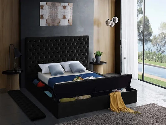 Luxurious Black Velvet Bed with Storage